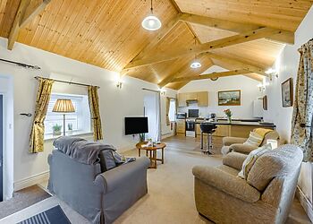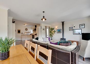 - Open-plan living with wood burner